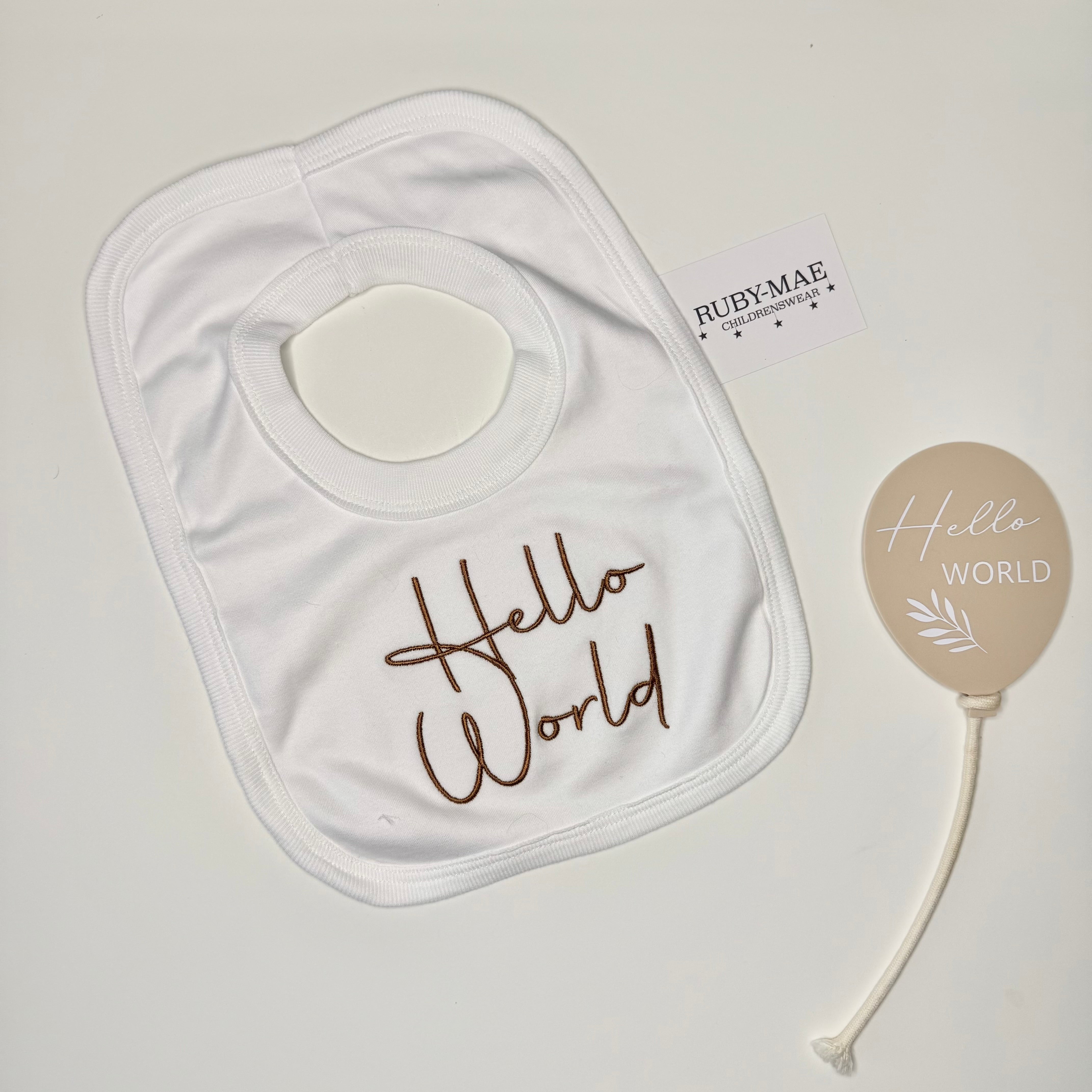 White Hello World Bib