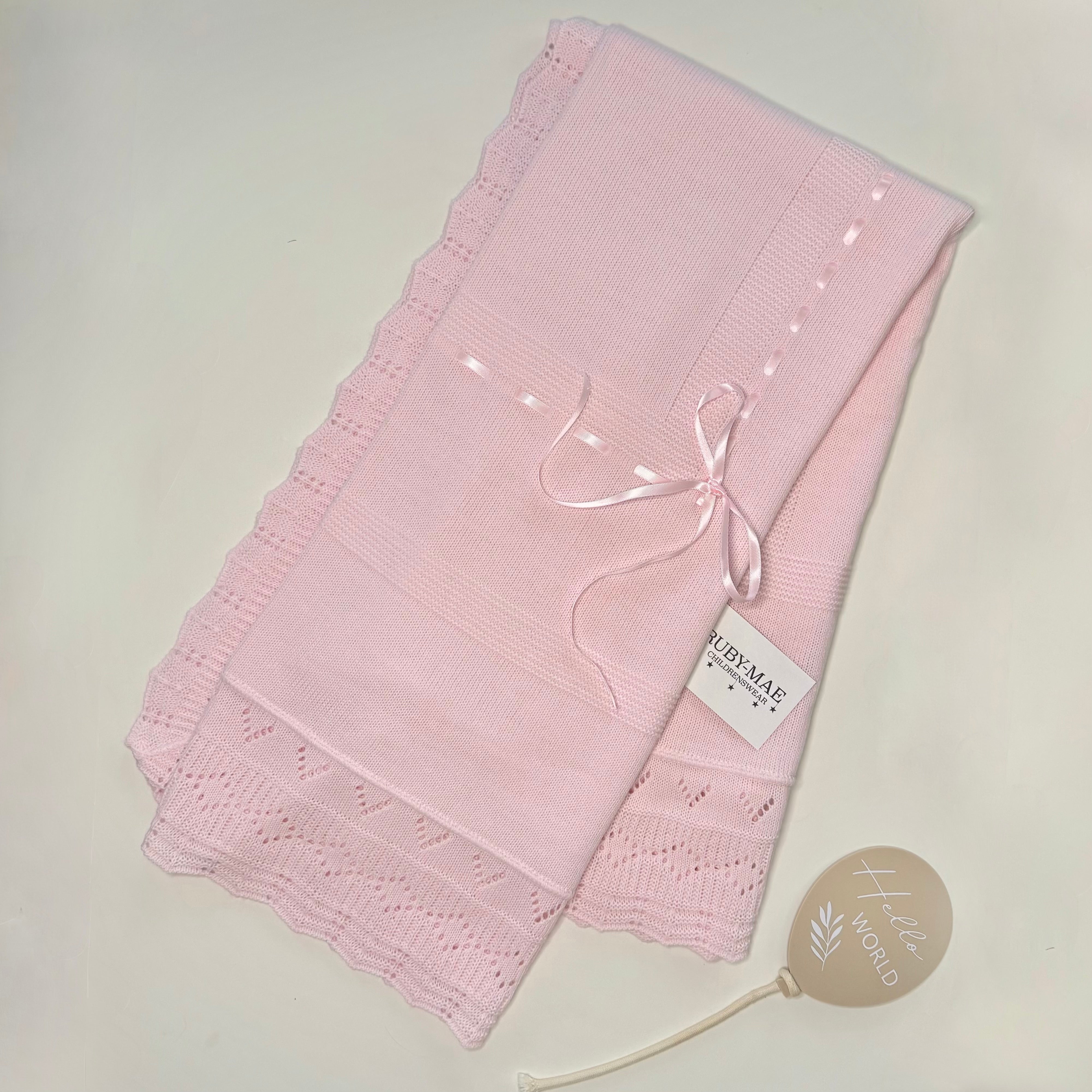 Pink Bow Knitted Baby Blanket