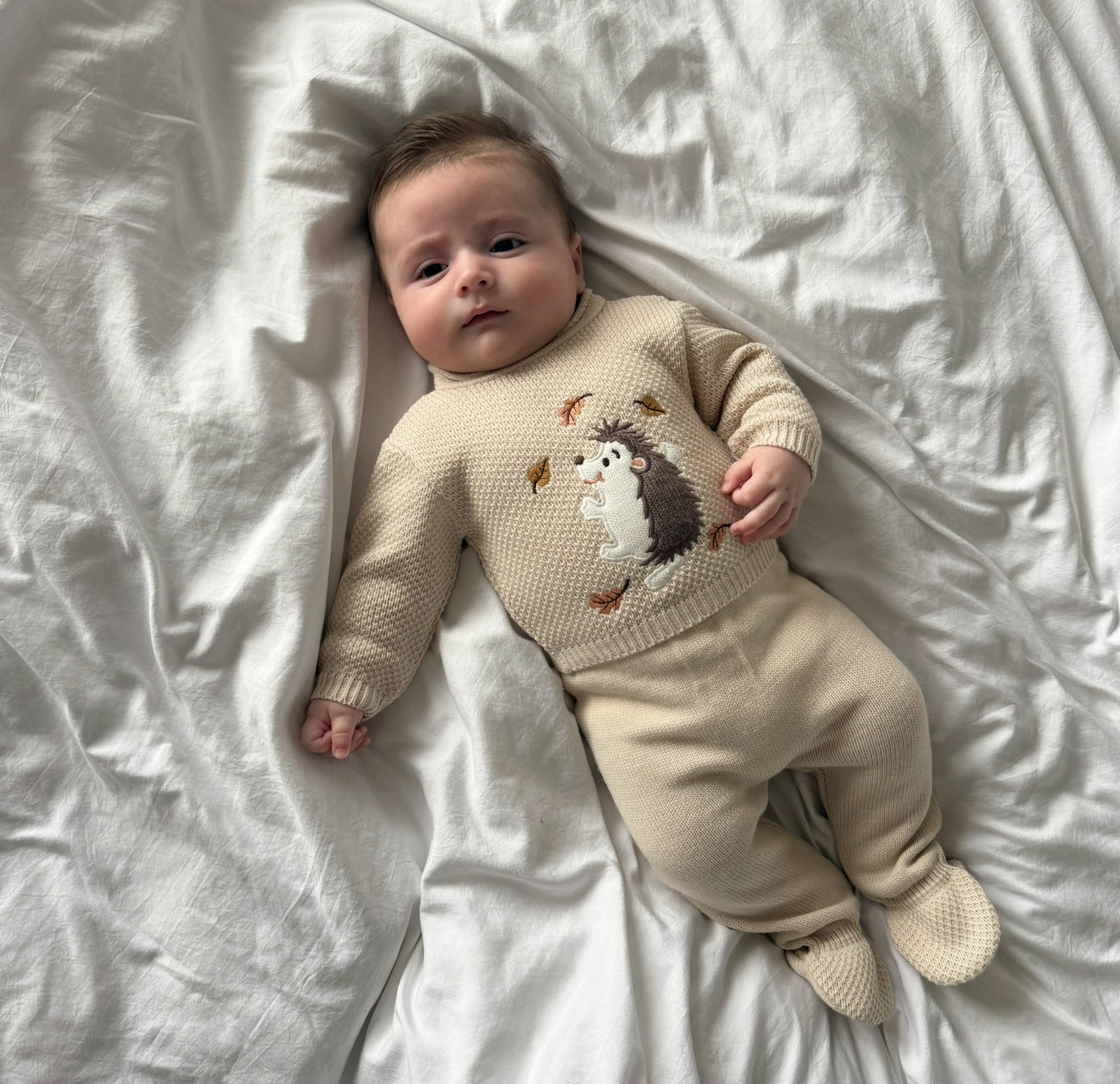 Camel Knitted Hedgehog Knitted Jumper & Pants Outfit
