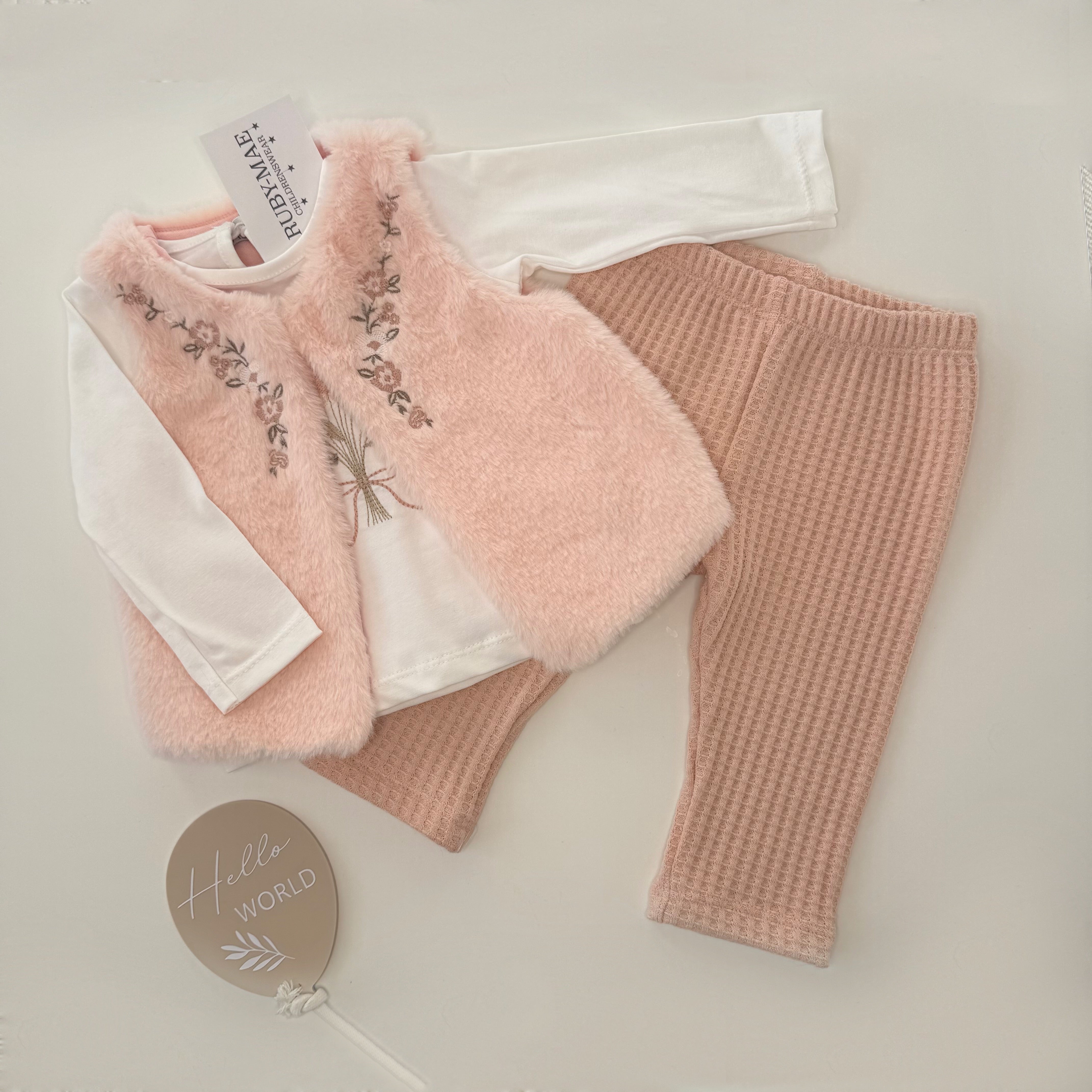 Blush Pink Faux Fur Gillet With Matching Jumper & Pants 3 Piece Outfit - Victoria