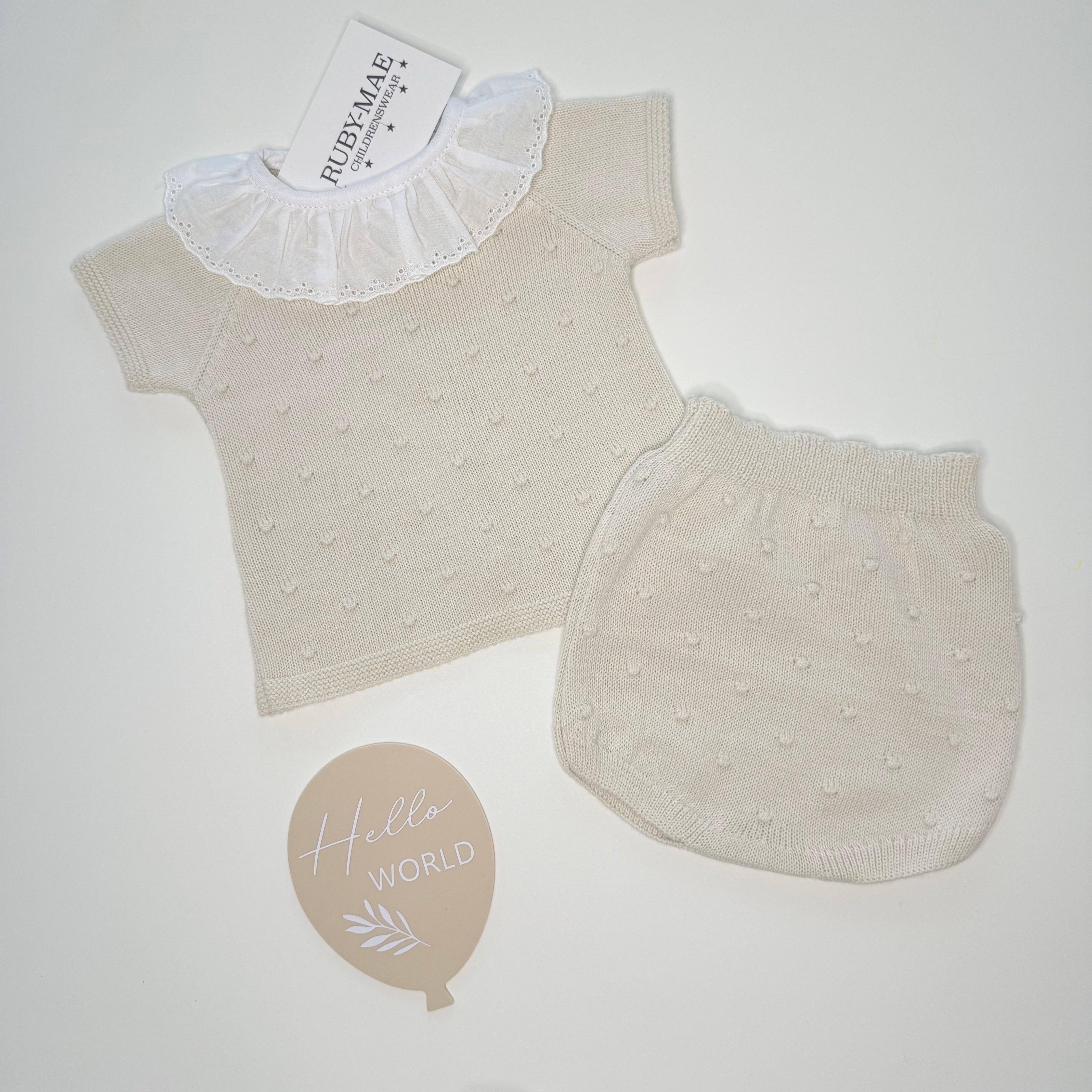 Beige Knitted Spotted Top & Bloomers Outfit - Kiera