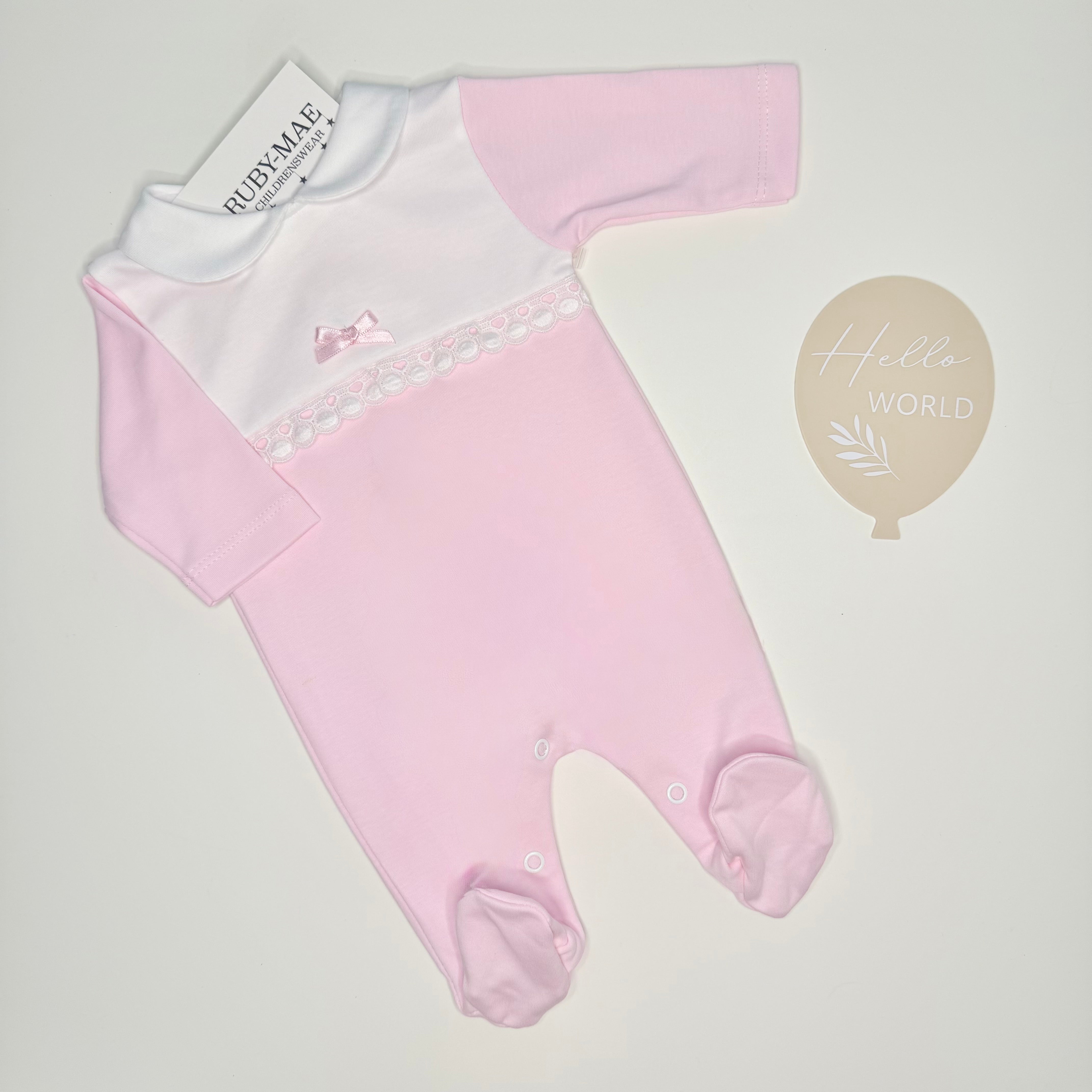 Pink Bow Cotton Babygrow - Bonnie