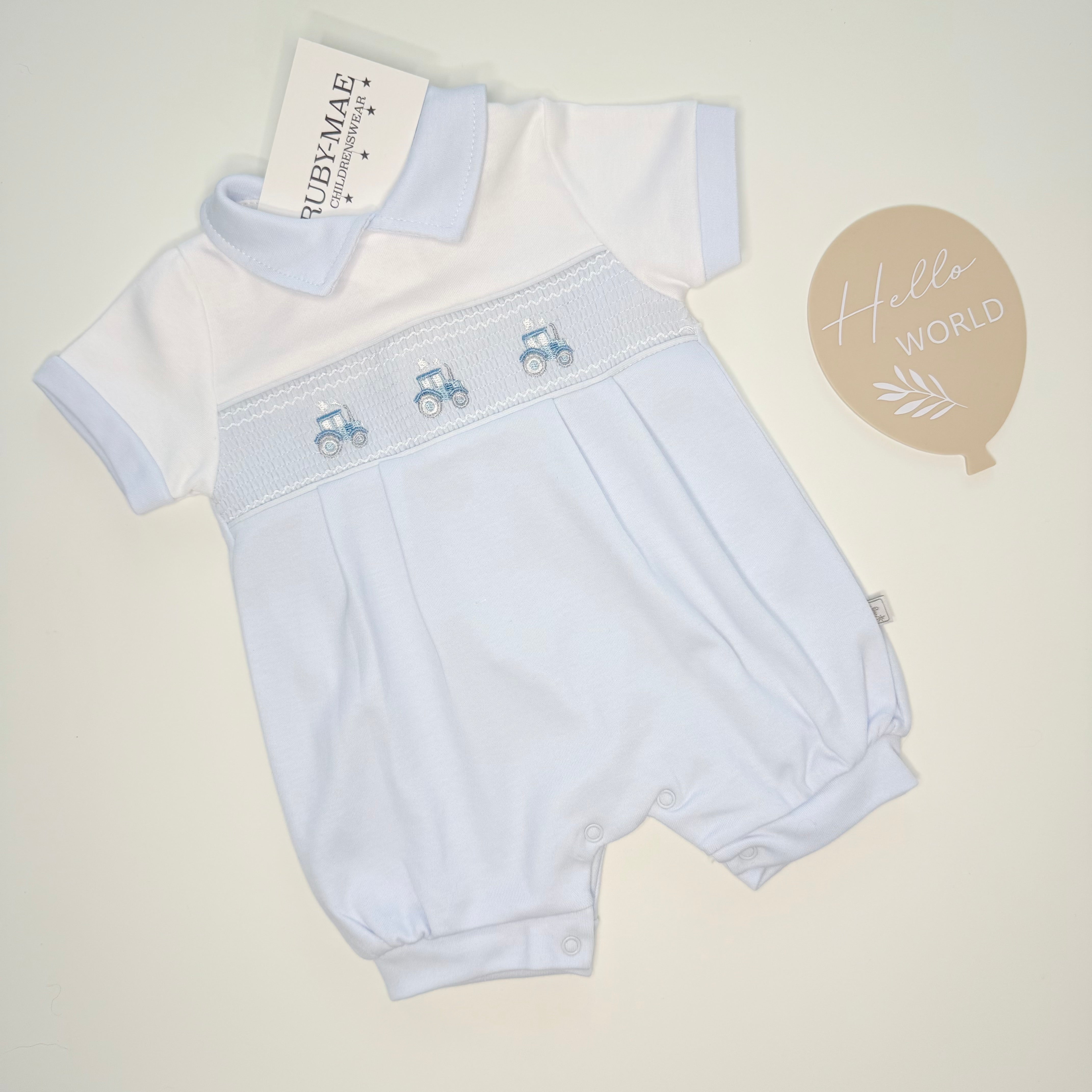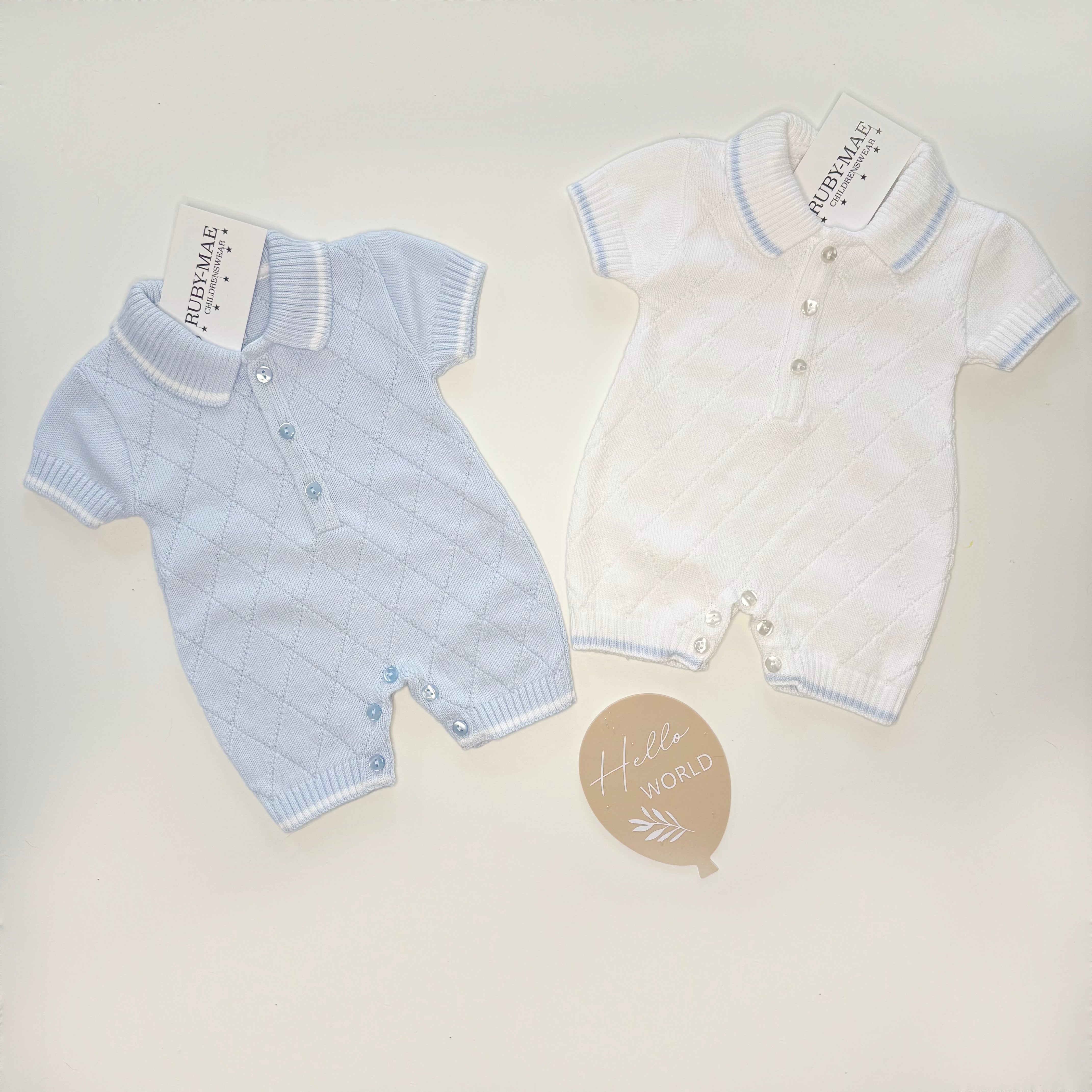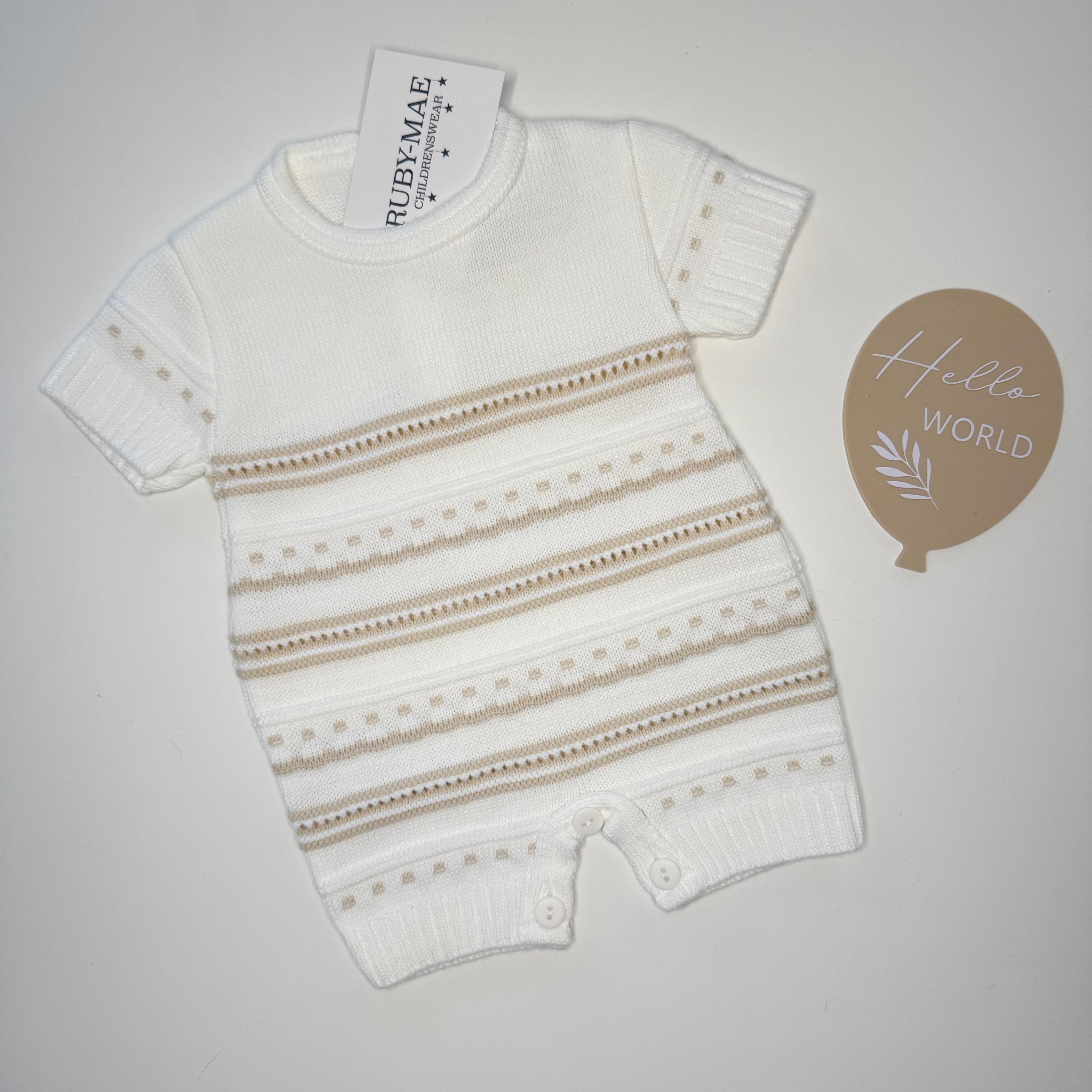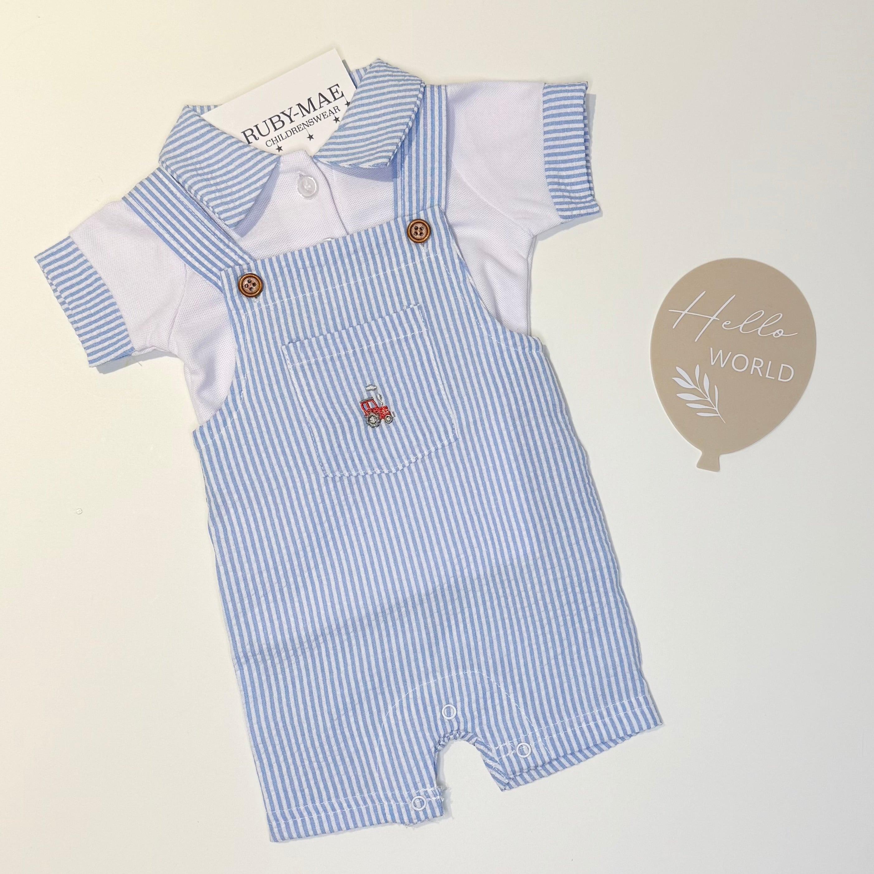 Blue Stripe Dungaree Romper With Matching White Top Outfit - Evan