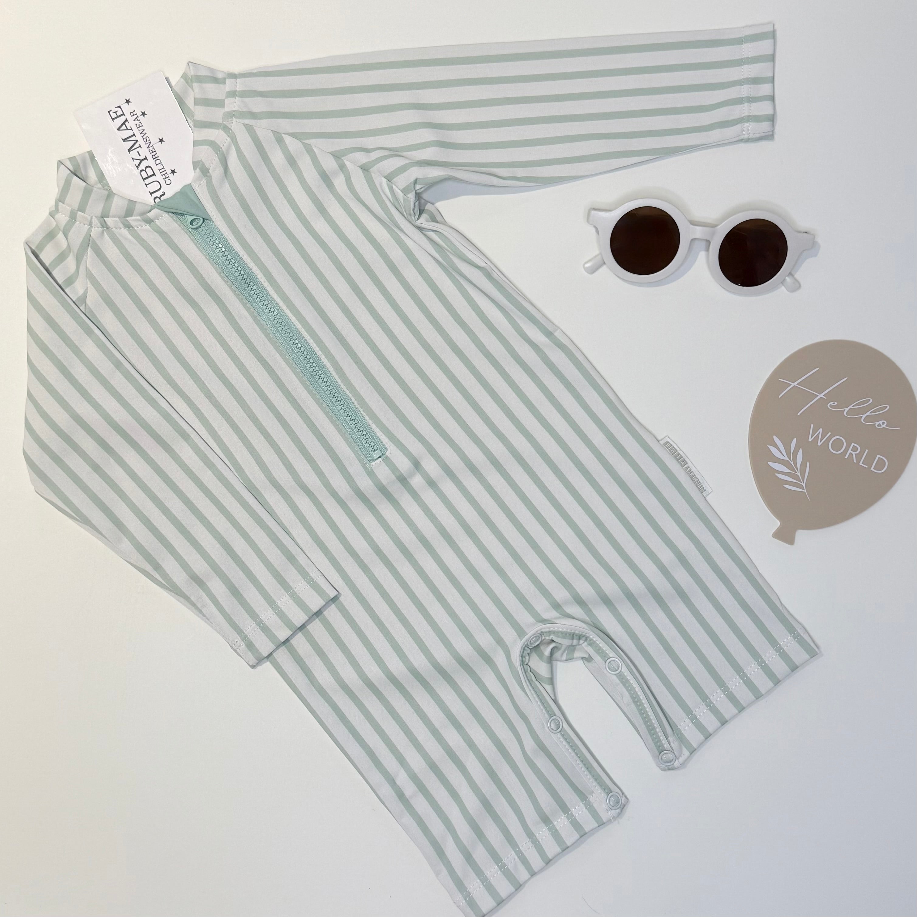 Mint Stripe Long Sleeve Zip Swimsuit With Matching Sunglasses