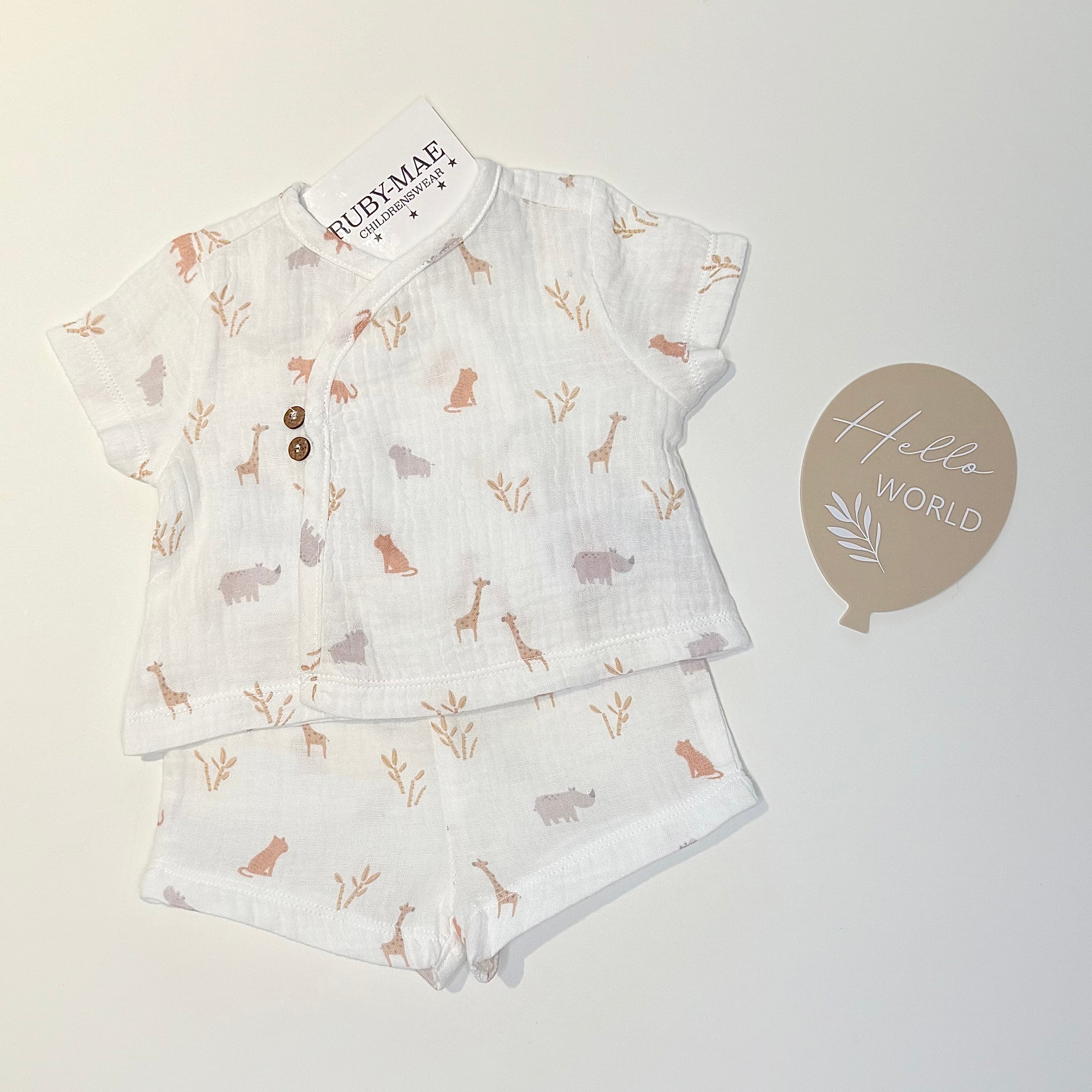 White Safari Cheesecloth Top & Shorts Outfit - Albie