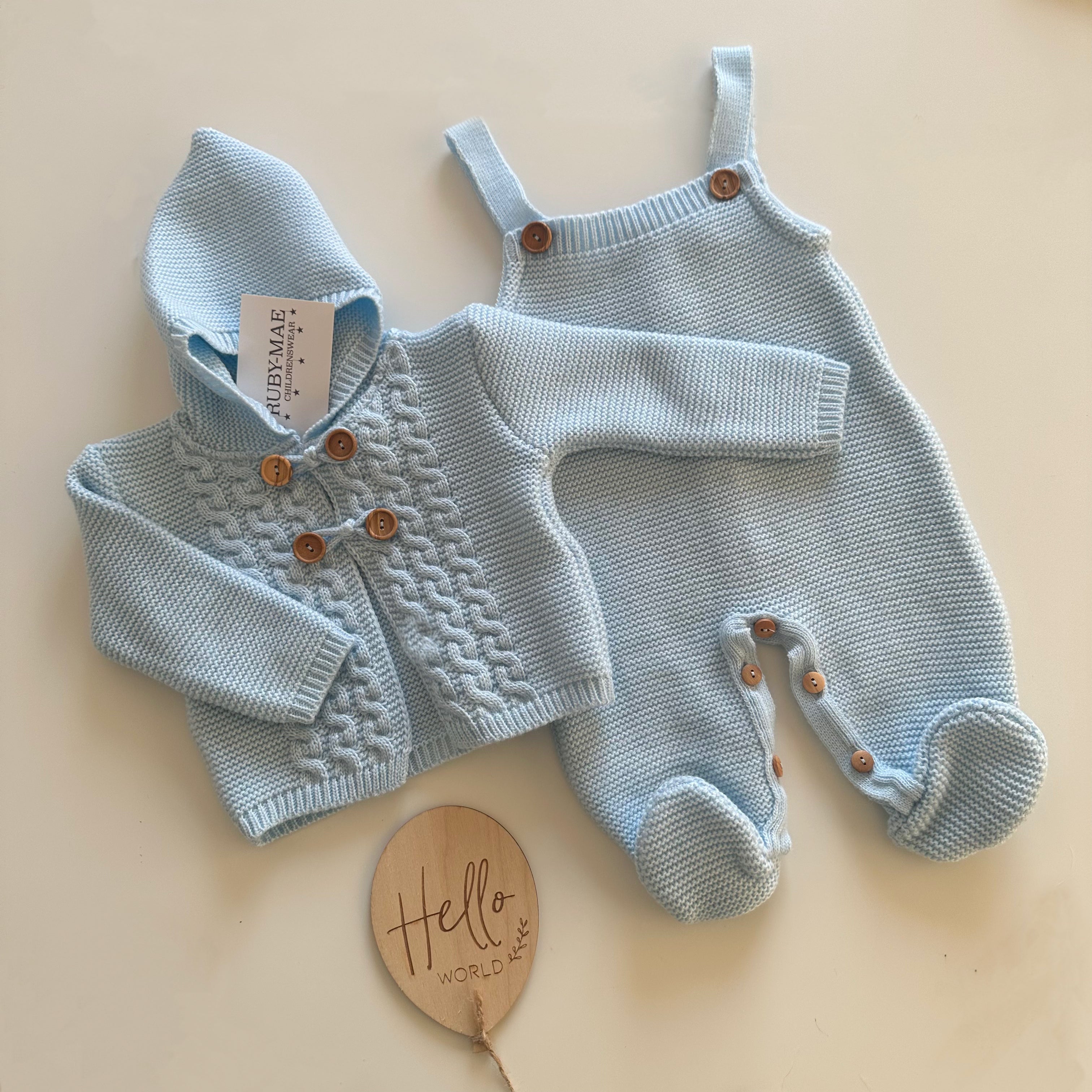 Blue Knitted Long Leg Dungaree With Matching Jacket Outfit Set - Luke