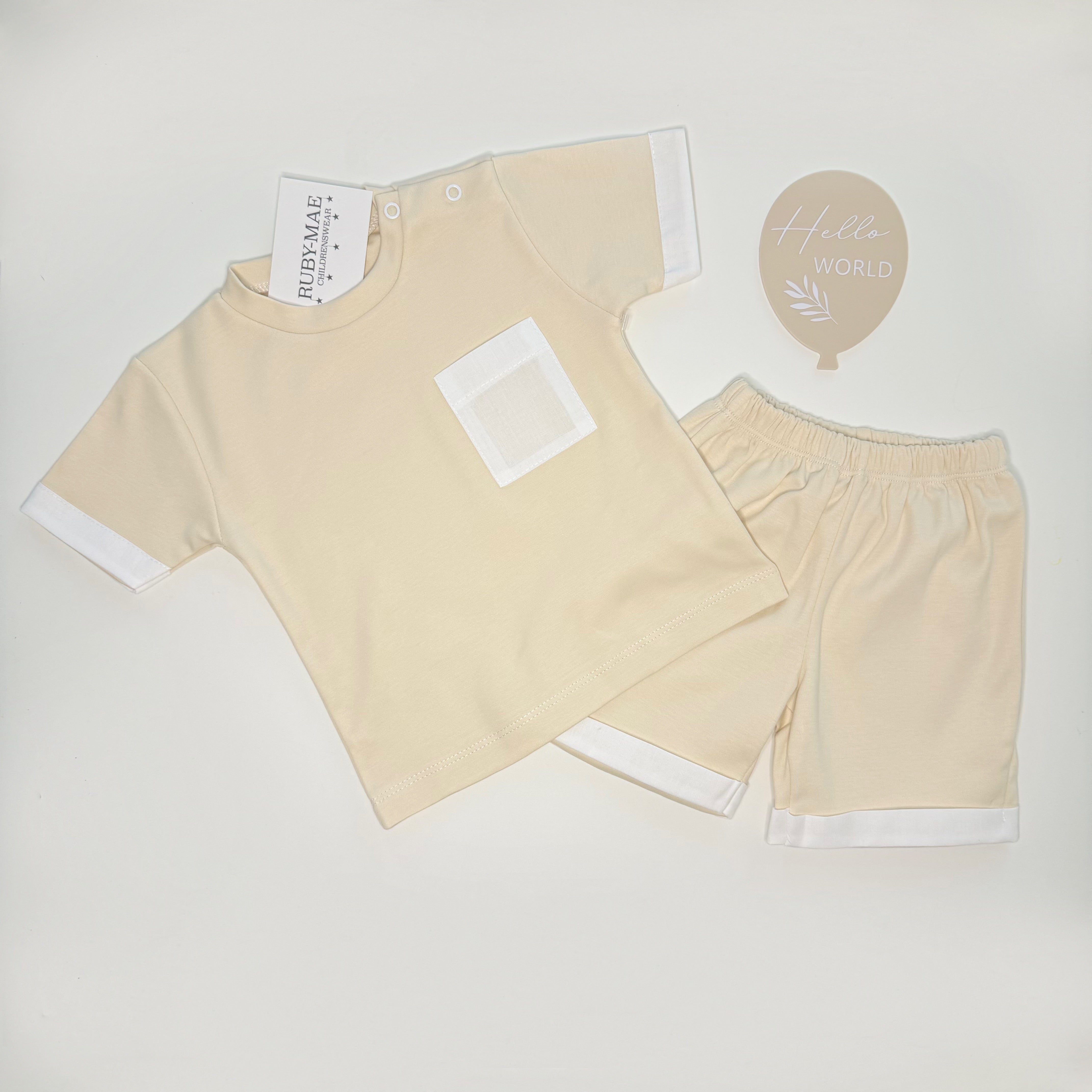 Beige With White Pocket T-Shirt & Shorts Outfit - Jack