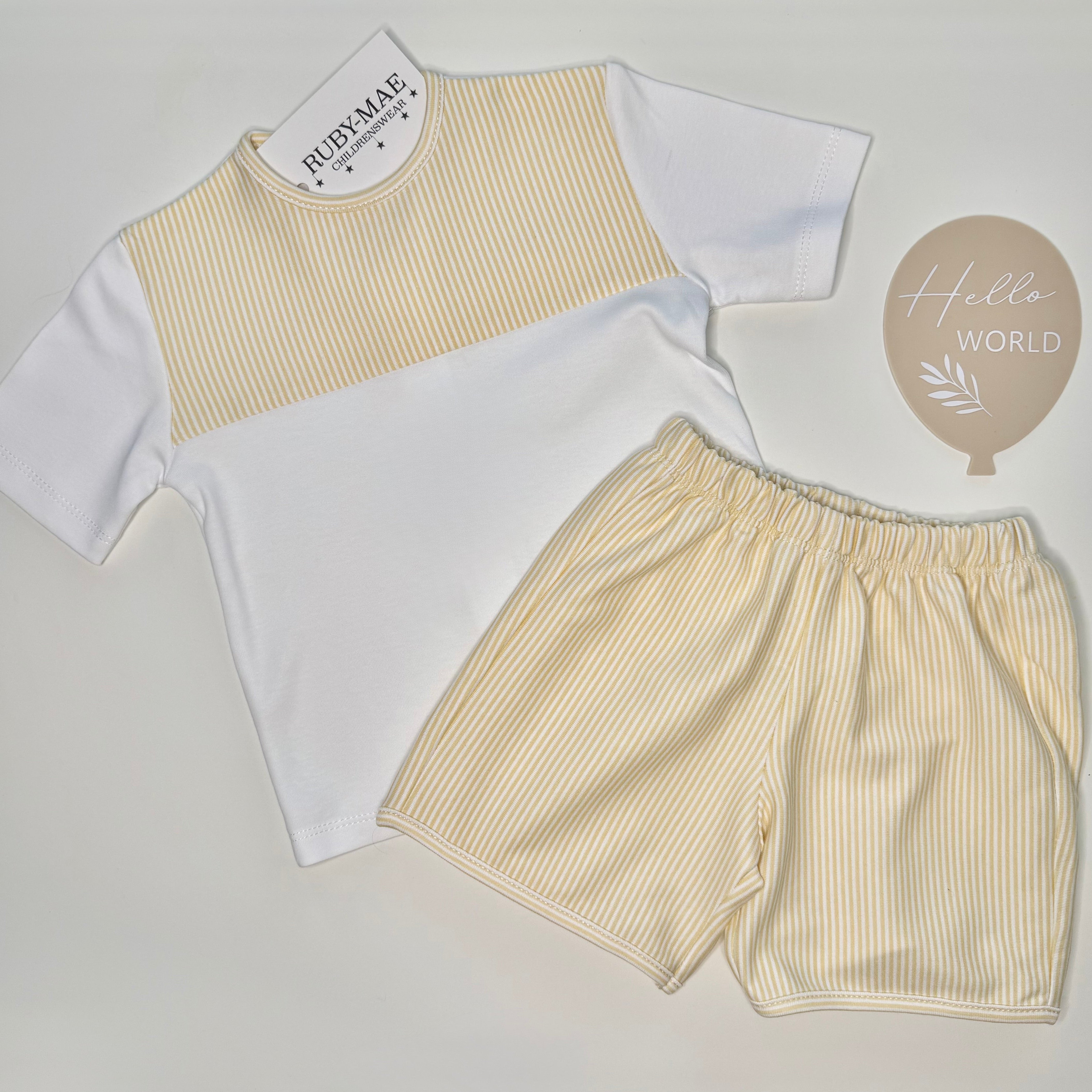 Beige Stripe T-Shirt & Shorts Outfit - Oliver