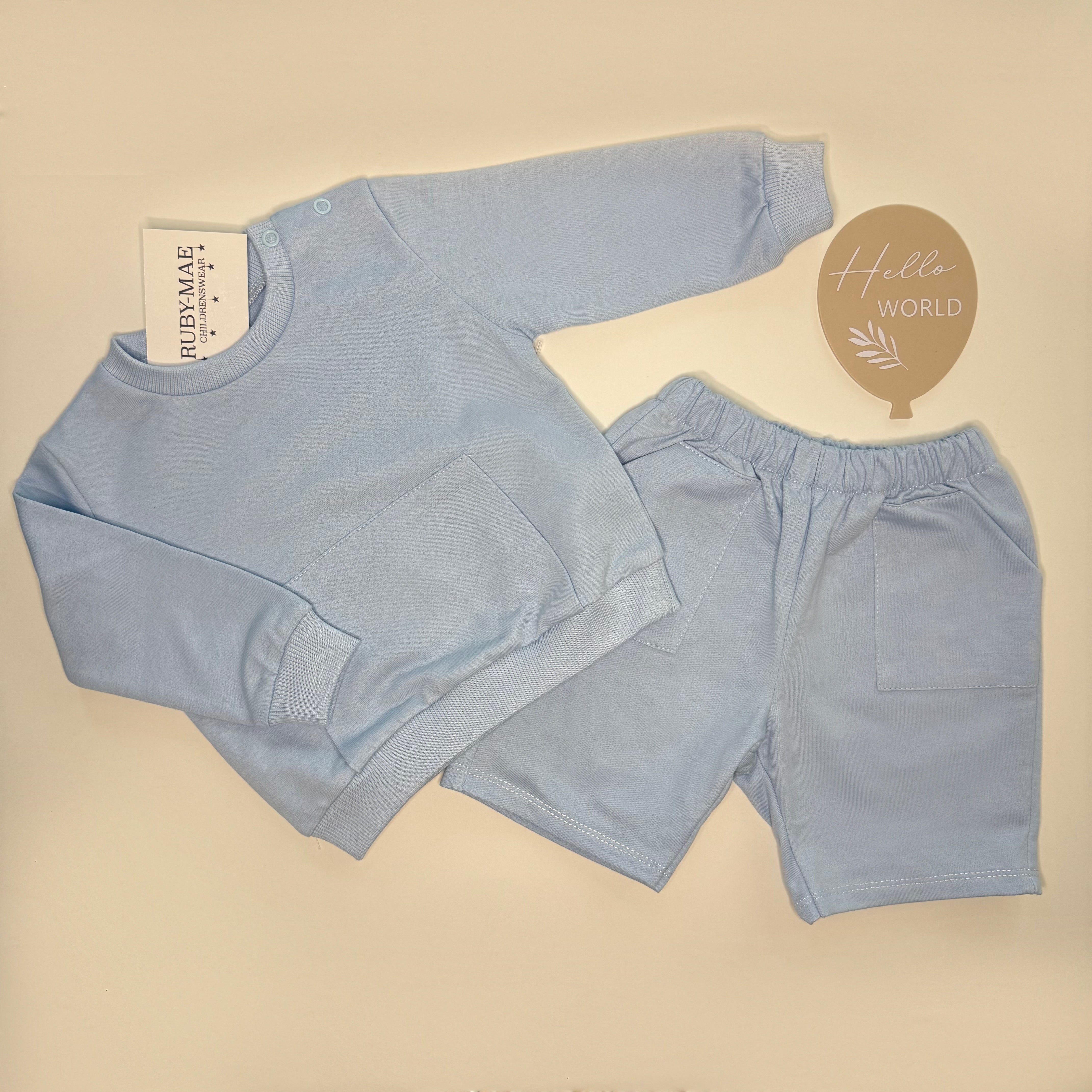 Blue Loungewear Jumper & Shorts Outfit - Eddy
