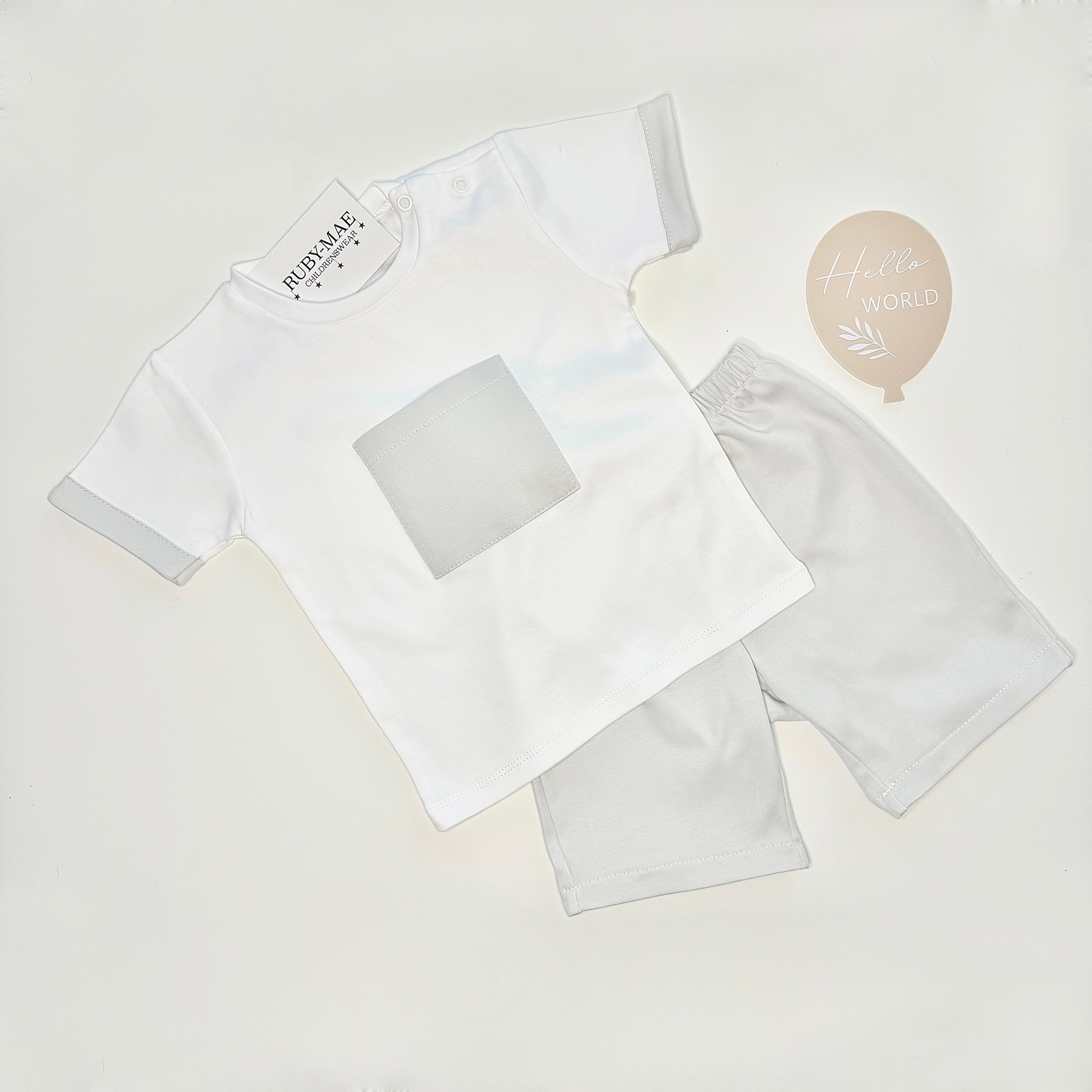 White With Grey Pocket T-Shirt & Shorts Outfit - Ben