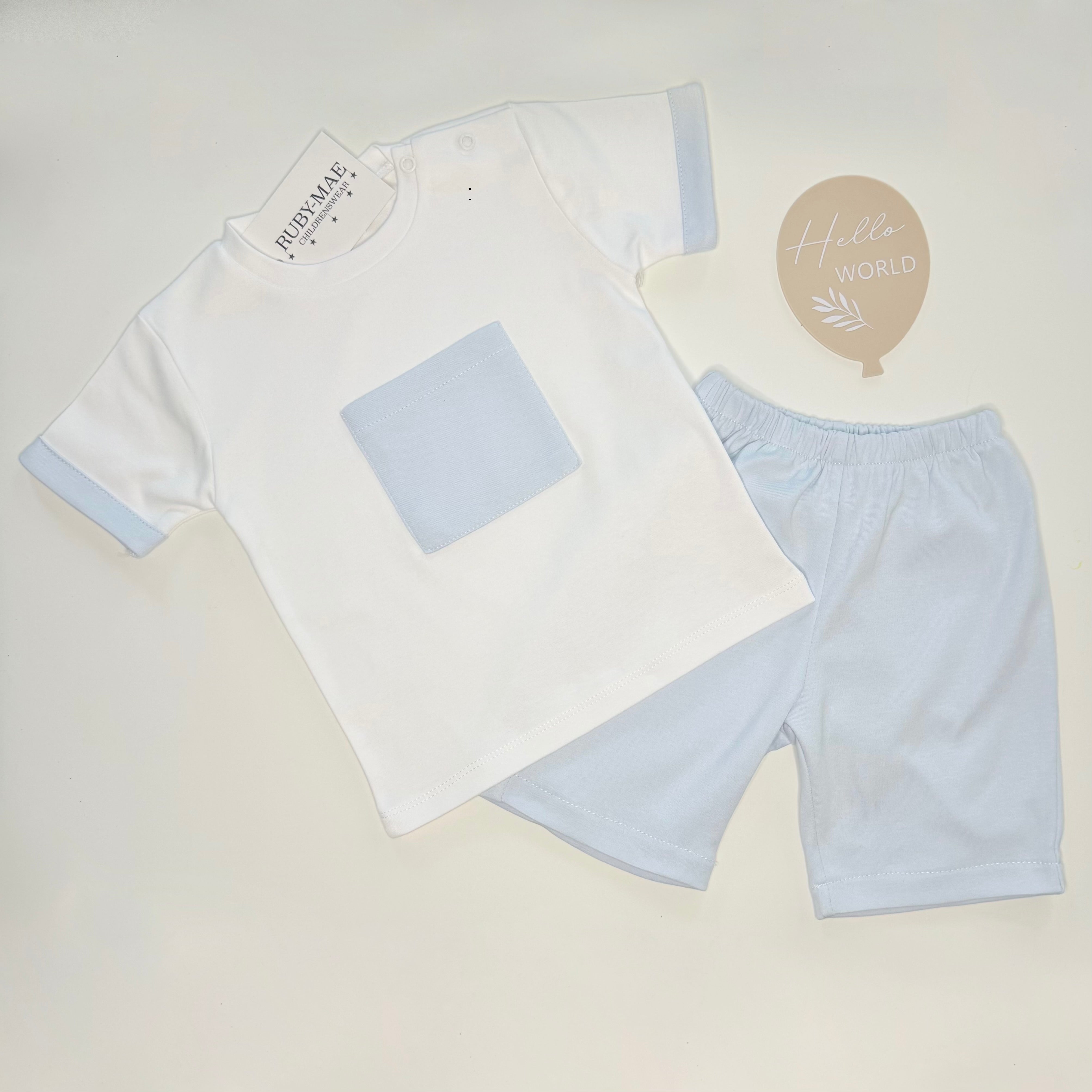 White With Blue Pocket T-Shirt & Shorts Outfit - Ben