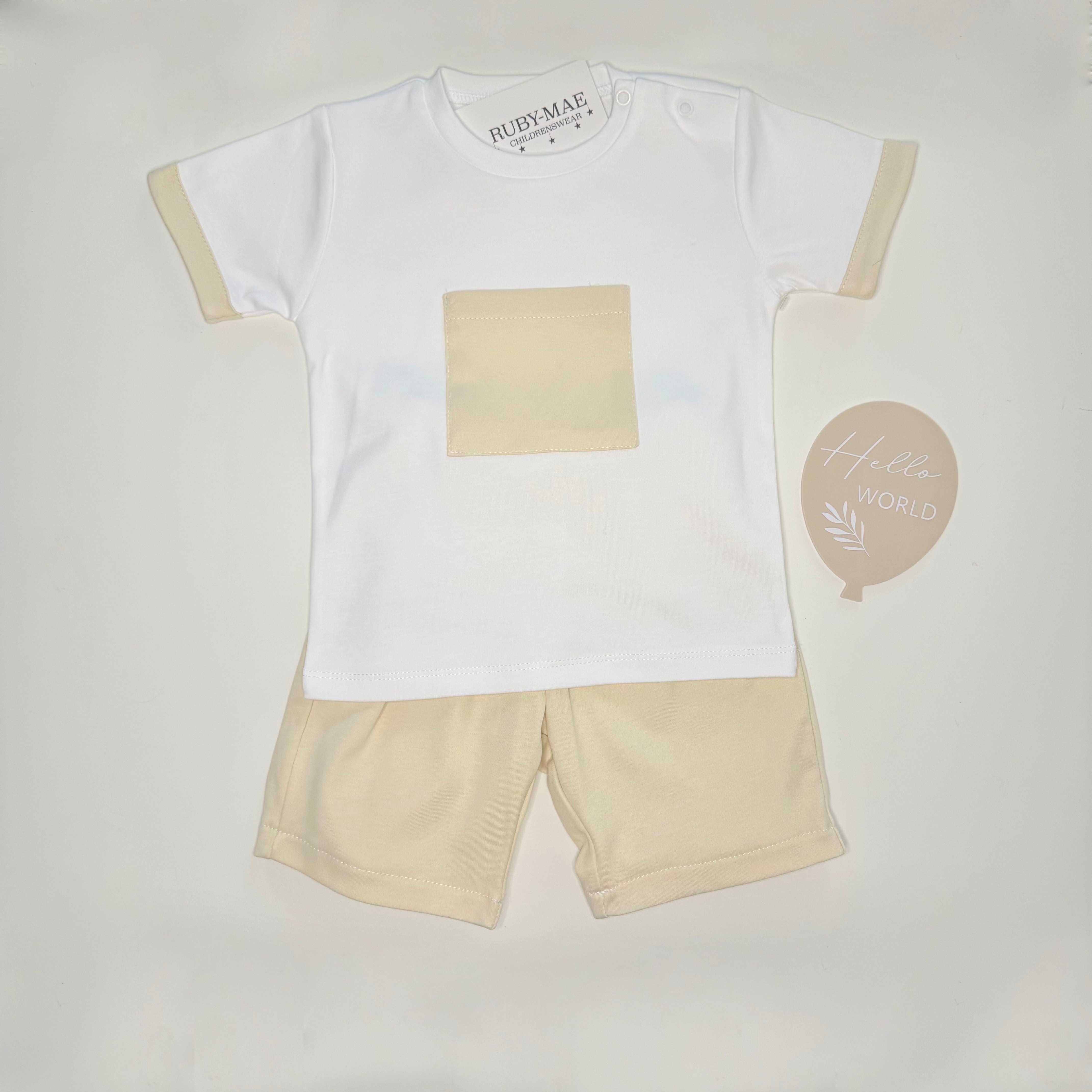 White With Beige Pocket T-Shirt & Shorts Outfit - Ben
