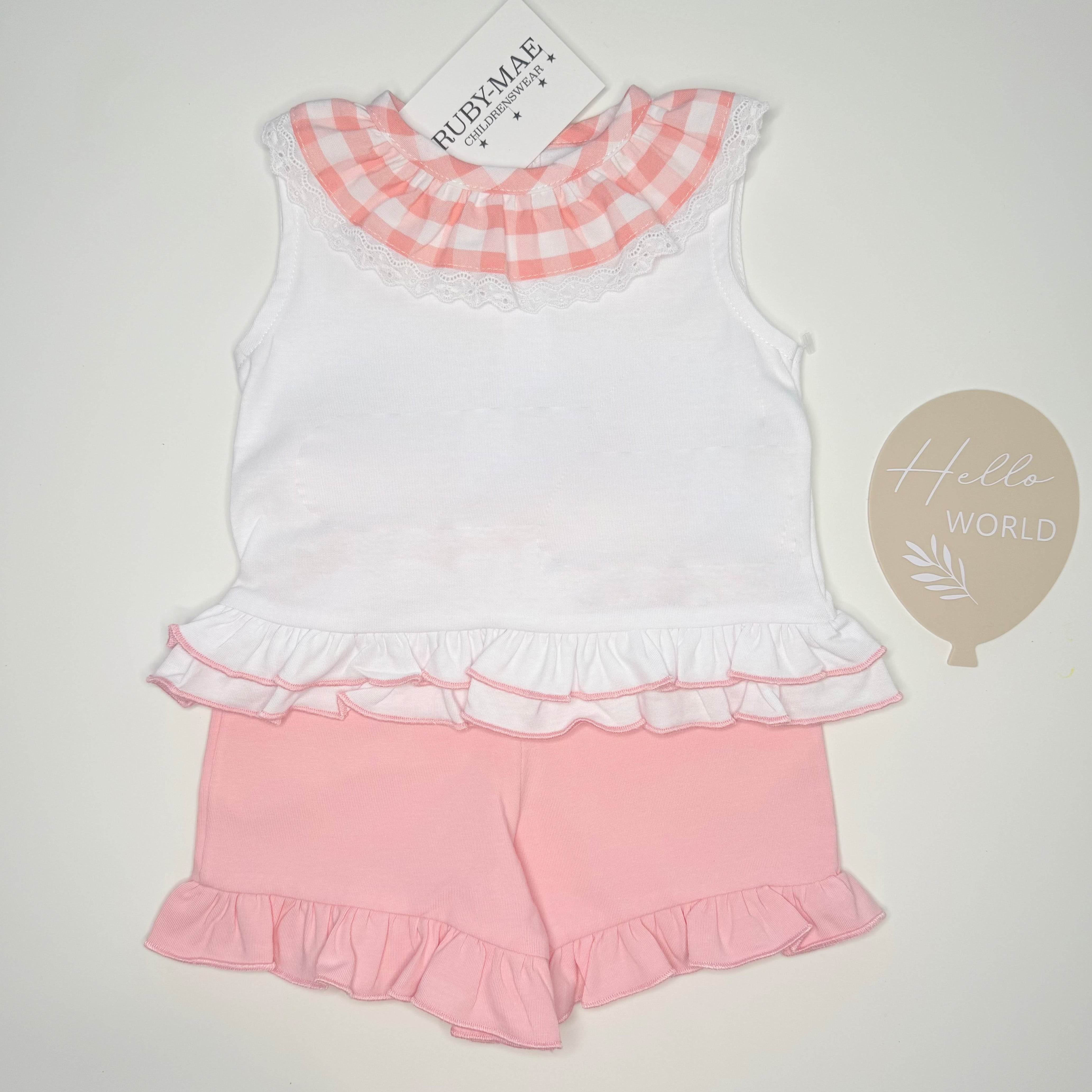 Coral Frill Top With Matching Shorts Set - Abigail