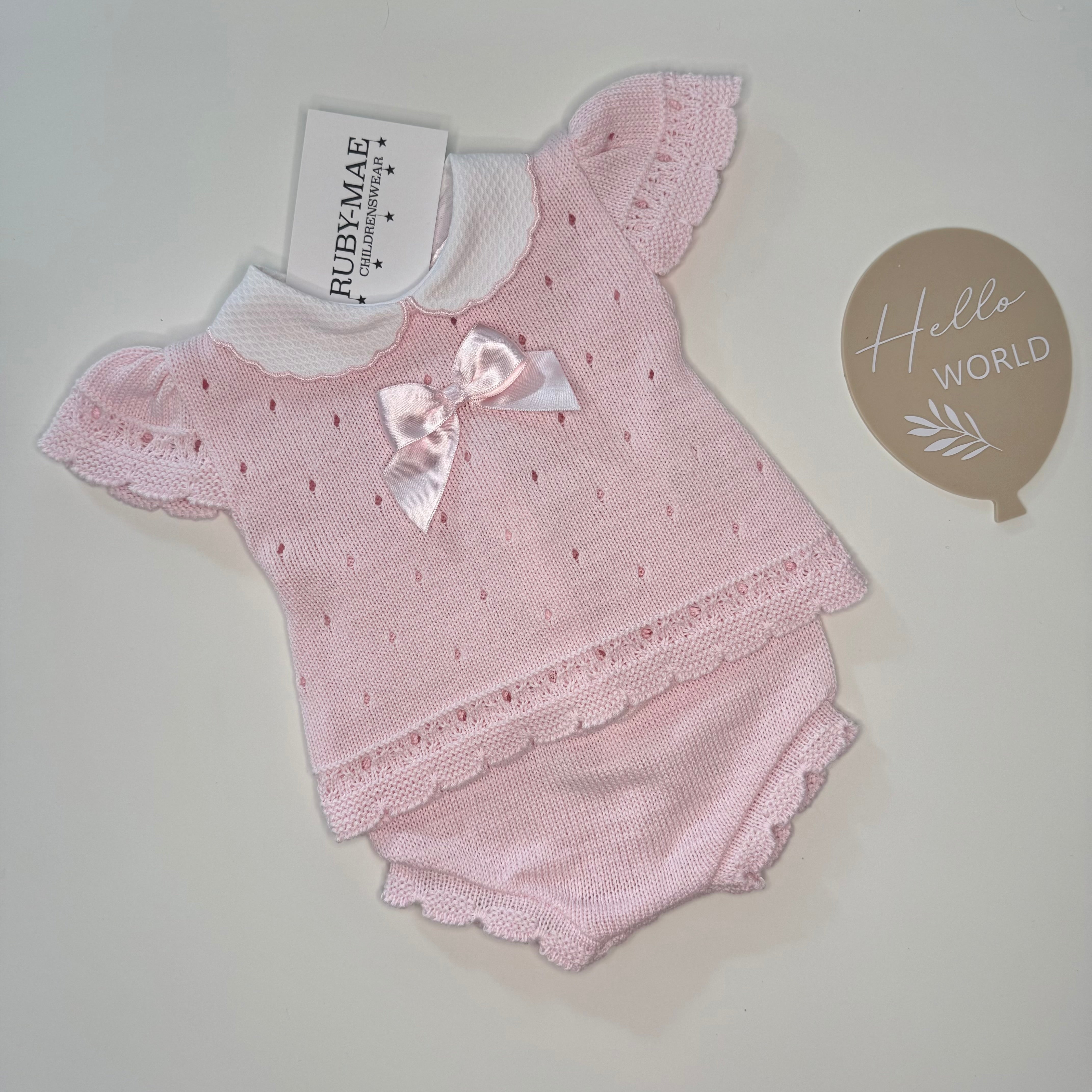 Pink Knitted Bow Top With Matching Bloomers - Summer