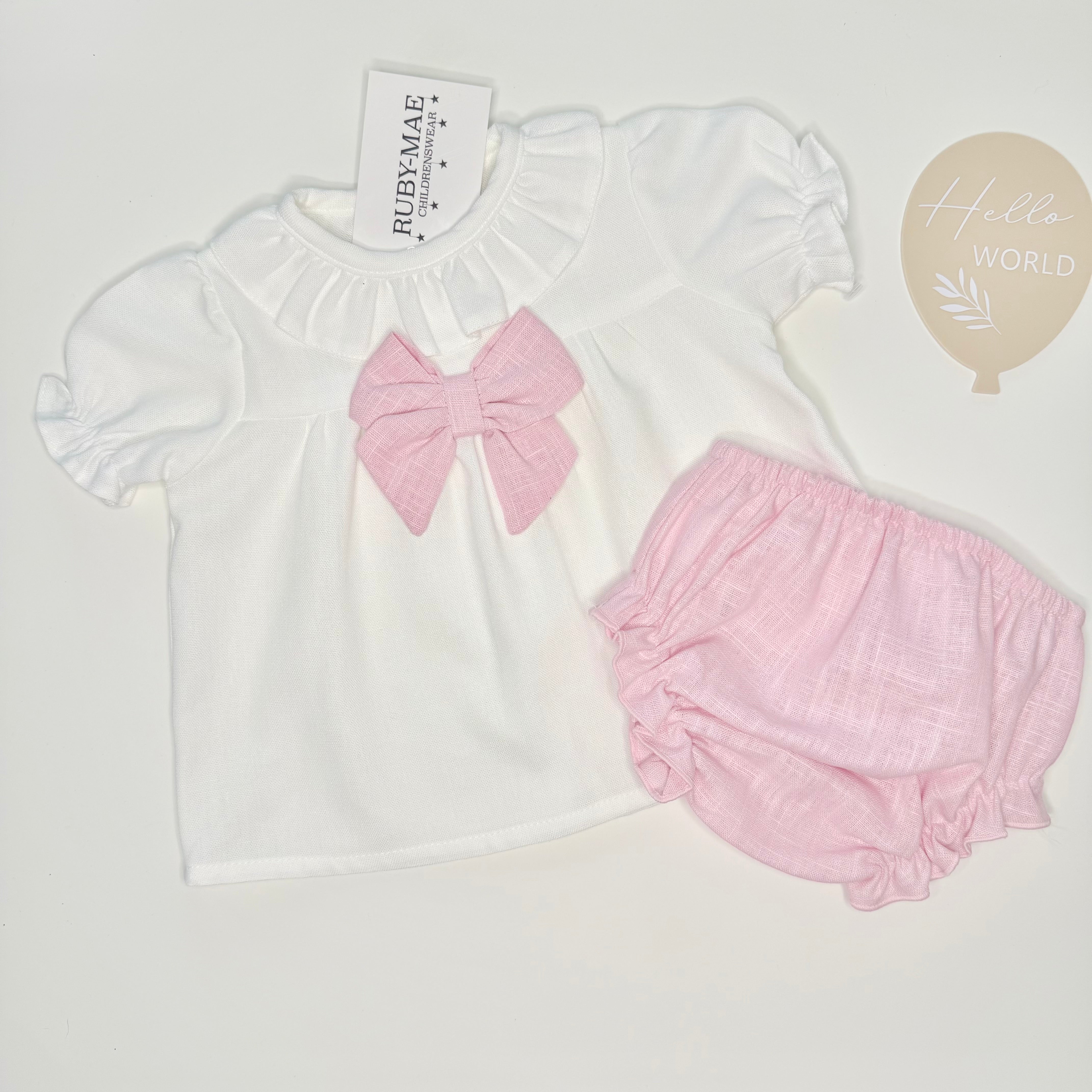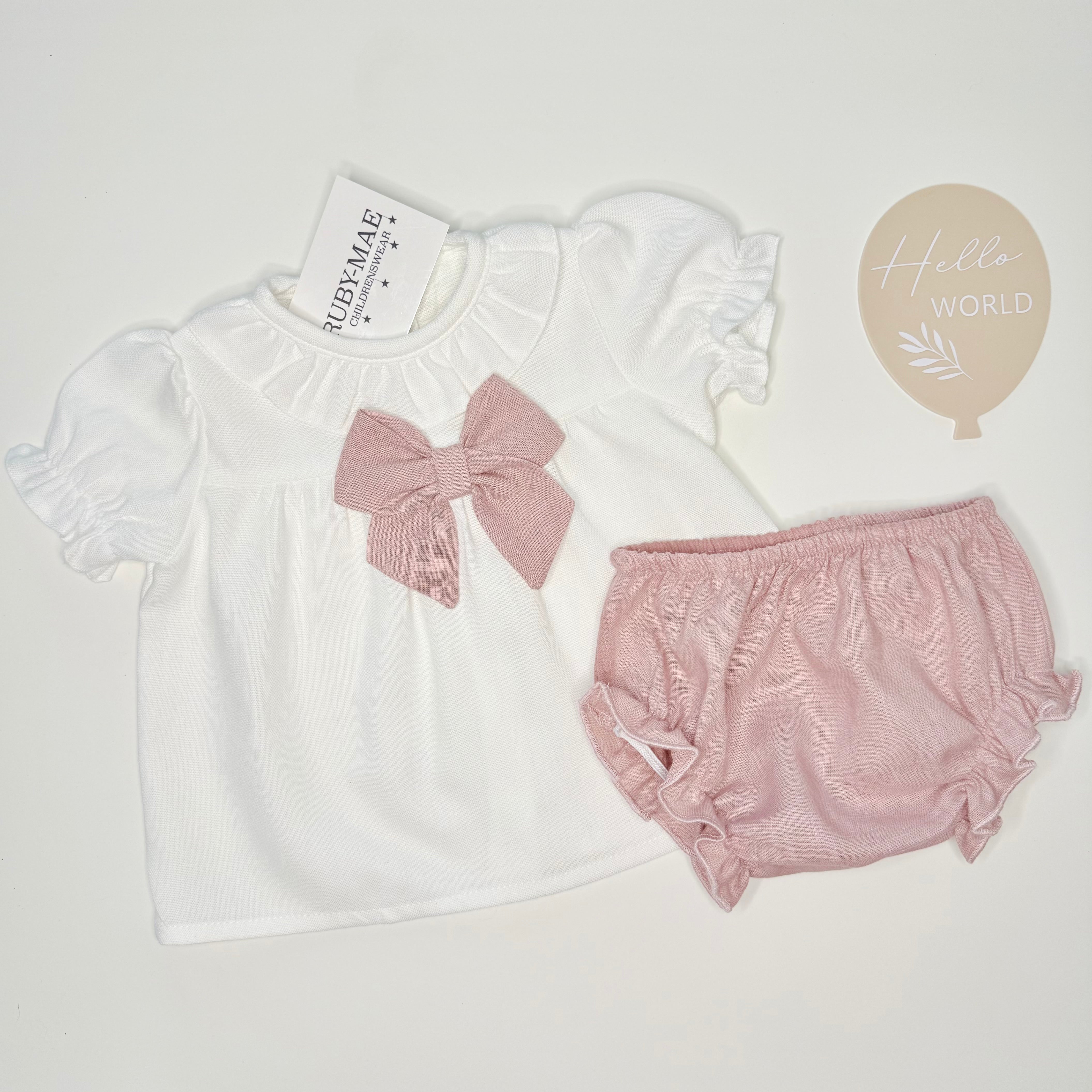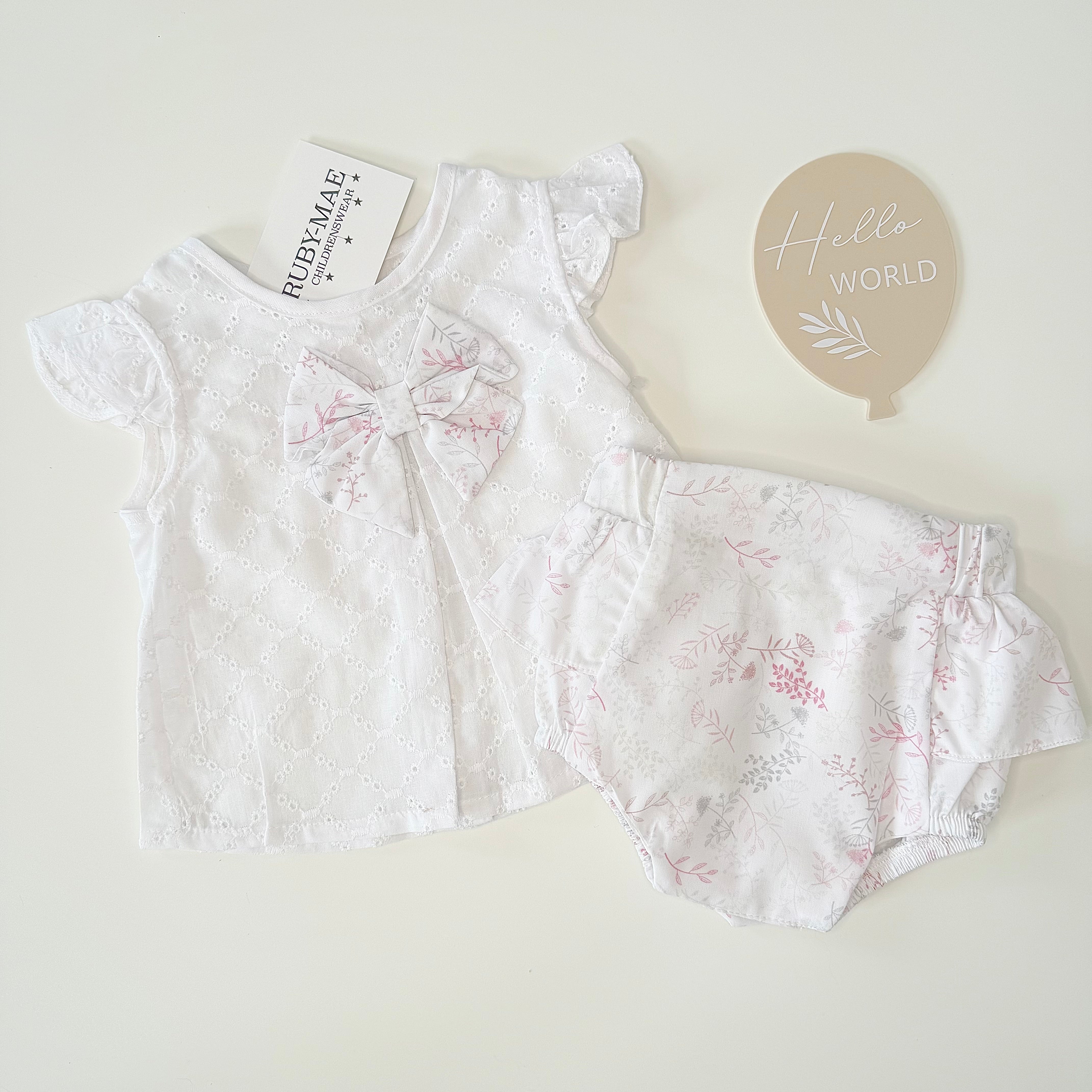 White Broderie Anglaise Bow Top With Matching Delicate Floral Bloomers - Lexi