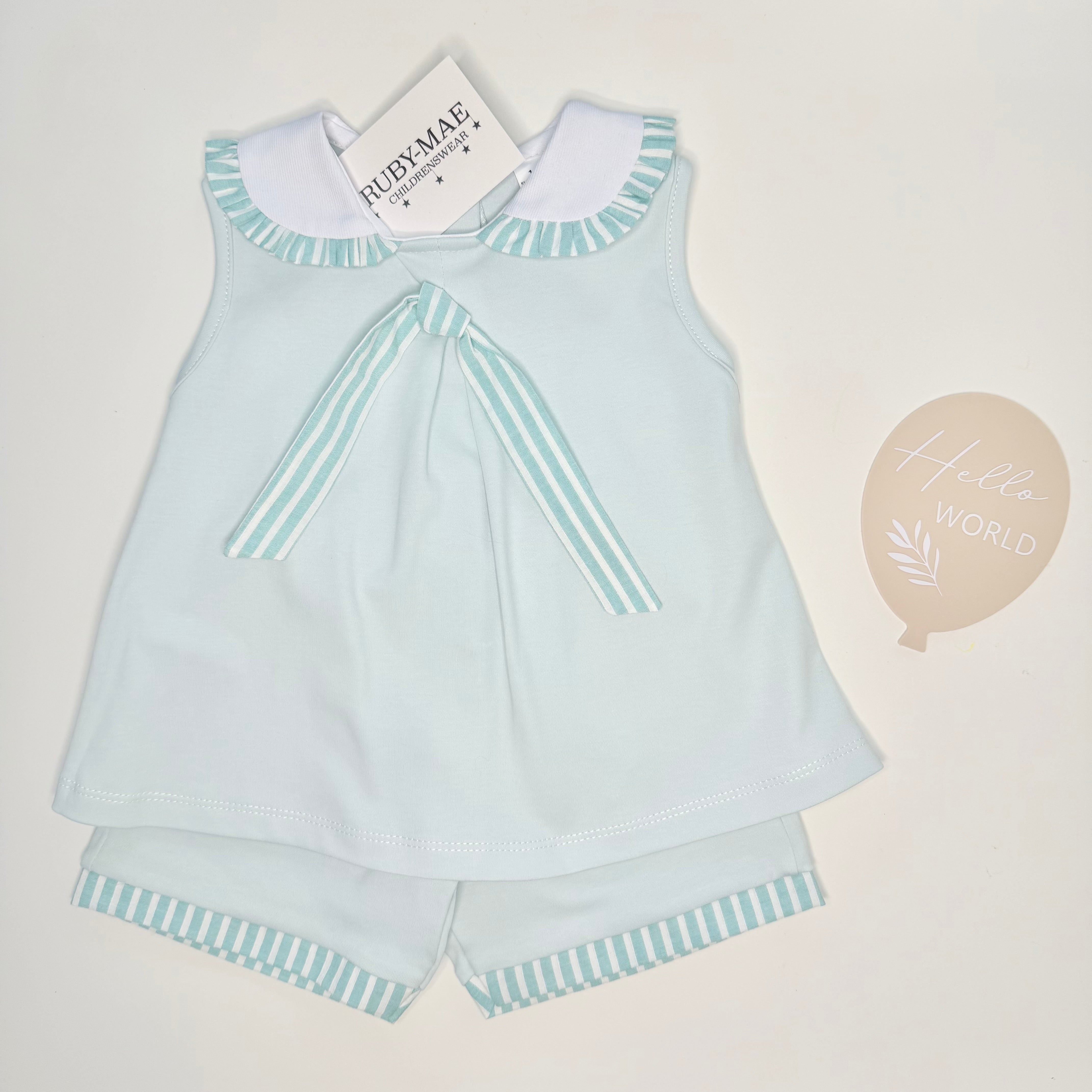 Mint Green Bow Top With Matching Shorts Set - Gianna