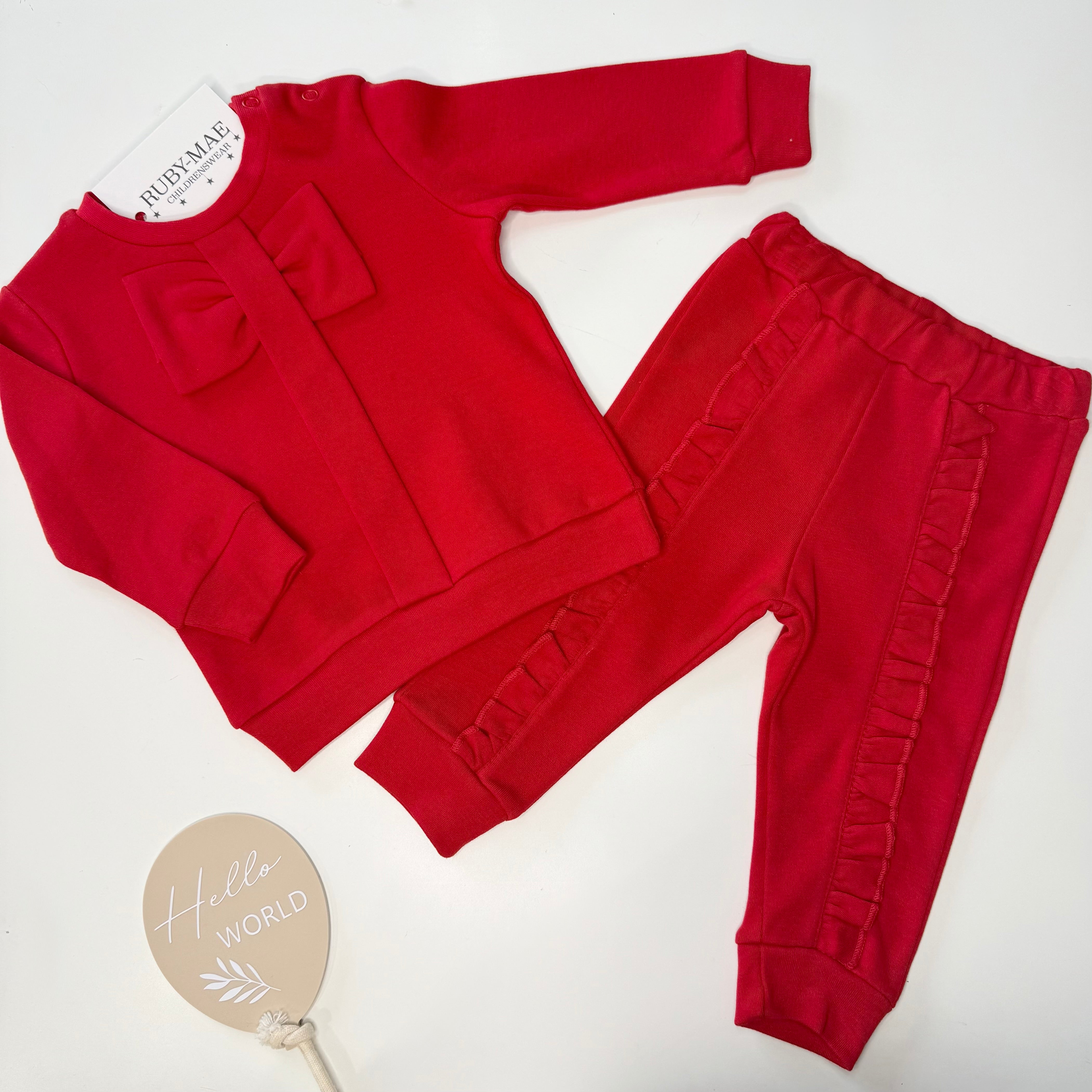 Red Bow Jumper & Frill Pants Outfit - Leah