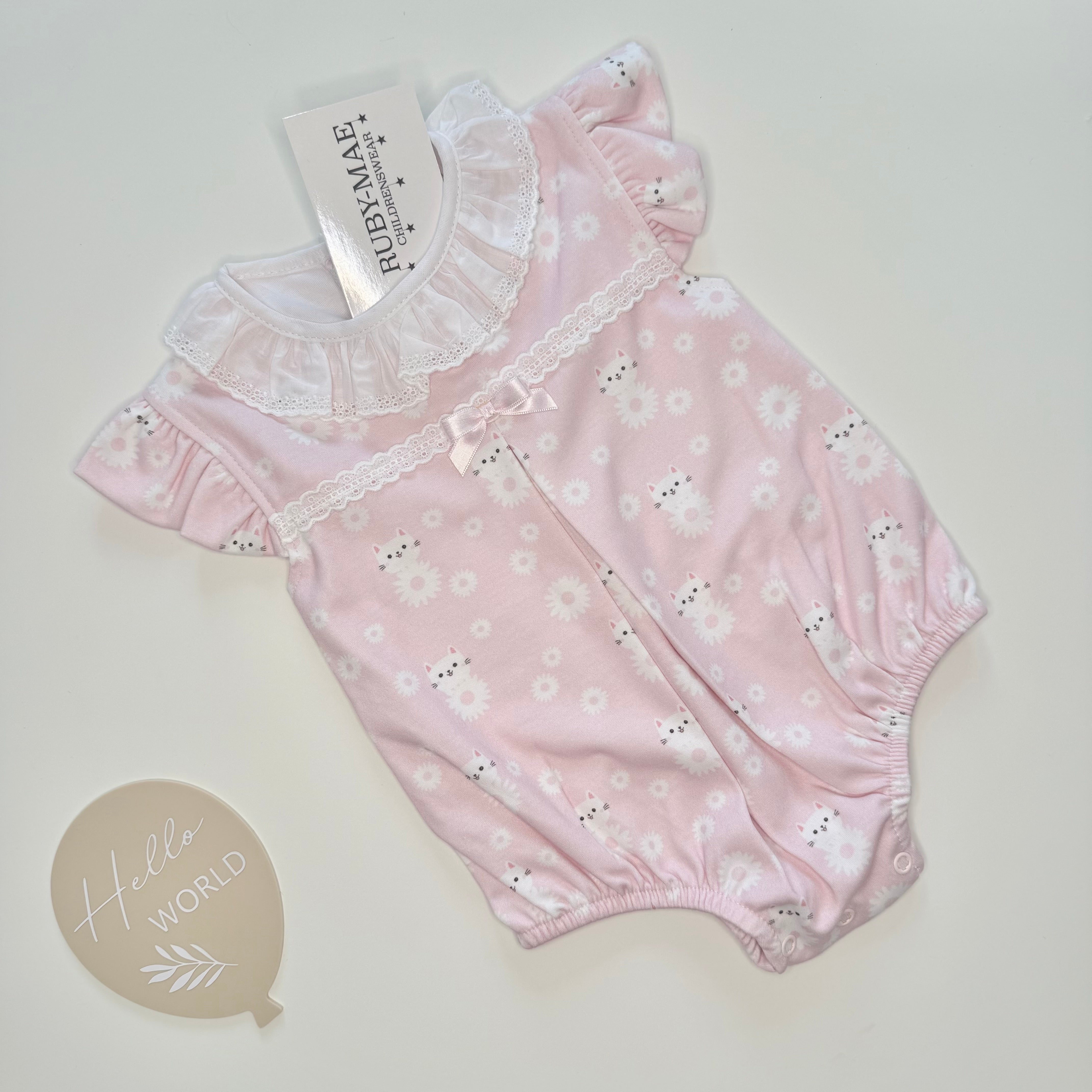 Pink With White Frill Bow Romper - Zuri