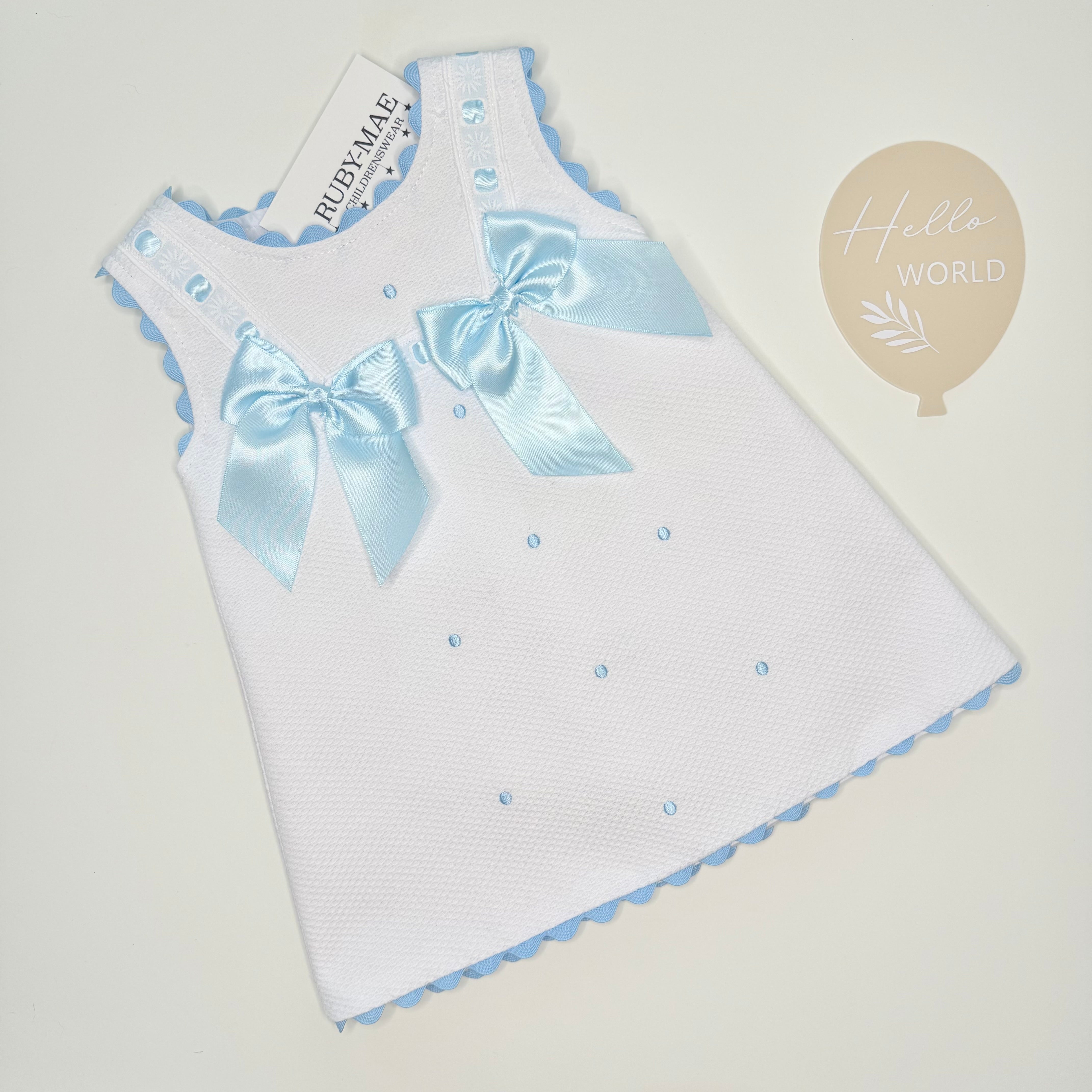 WeeMee White With Blue Bow Dress - Rebecca