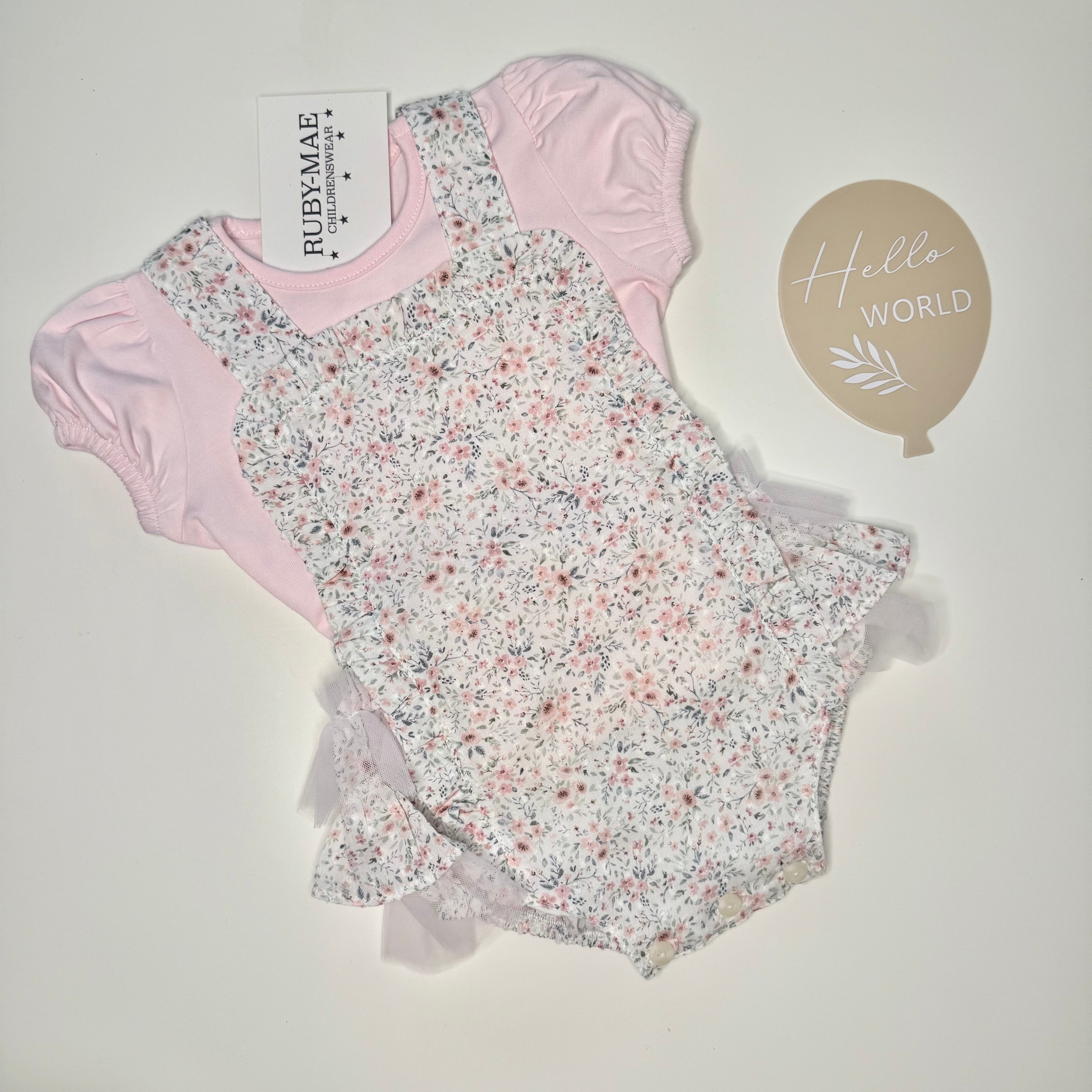 Floral Pink Lace Dungaree Romper With Matching T-Shirt - Stella